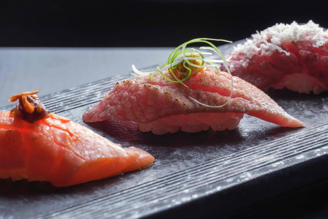 From the moment you're seated, the experience feels intentional. A hot towel is offered to cleanse your hands, followed by a chilled shooter of umami-rich broth to awaken the palate. Tableside soy sauce service and fresh plates with every course add to the quiet sense of ceremony. Servers encourage guests to order one dish from each section and share family-style.